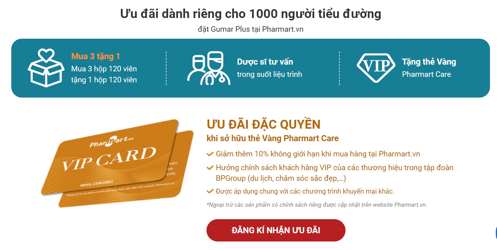 Trong suốt liệu trình sử dụng, người bệnh còn được đội ngũ bác sĩ, dược sĩ có chuyên môn tư vấn và hỗ trợ tận tình. Hiện nay nhà thuốc Pharmart đang có chương trình ưu đãi dành riêng cho người bệnh tiểu đường: